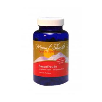 Entspannte Augen - entspannte Sicht Mount Shasta Augenfreude unterstützt • die Sehkraft • den Vitamin A – Stoffwechsel • das Immunsystem • die kognitiven Funktionen • den Fettsäuren- und Säure-Basen-Stoffwechsel • den Stoffwechsel der Kohlenhydrate und der Makronährstoffe 3 Monatsdose mit 180 Kapseln Mount Shasta Augenfreude enthält alles was das Auge braucht: Die Farbpigmente des ganzen Regenbogens in hervorragender natürlicher Qualität! Dazu gehört das komplette Spektrum der Carotine wie Alpha/beta-Carotin, Lutein, Zeaxanthin usw., die blaurote Farbe aus wilden Heidel- und Holunderbeeren (Anthocyanoside), die Grün- und Blautöne der Mikroalgen AFA, Chlorella und Spirulina (Chlorophyll und Phytocyanin). Deshalb haben wir bewußt auf die oft übliche Hochdosierung z.B. von Lutein verzichtet. Mit Mount Shasta Augenfreude sehen Sie entspannt und klar in die Zukunft!